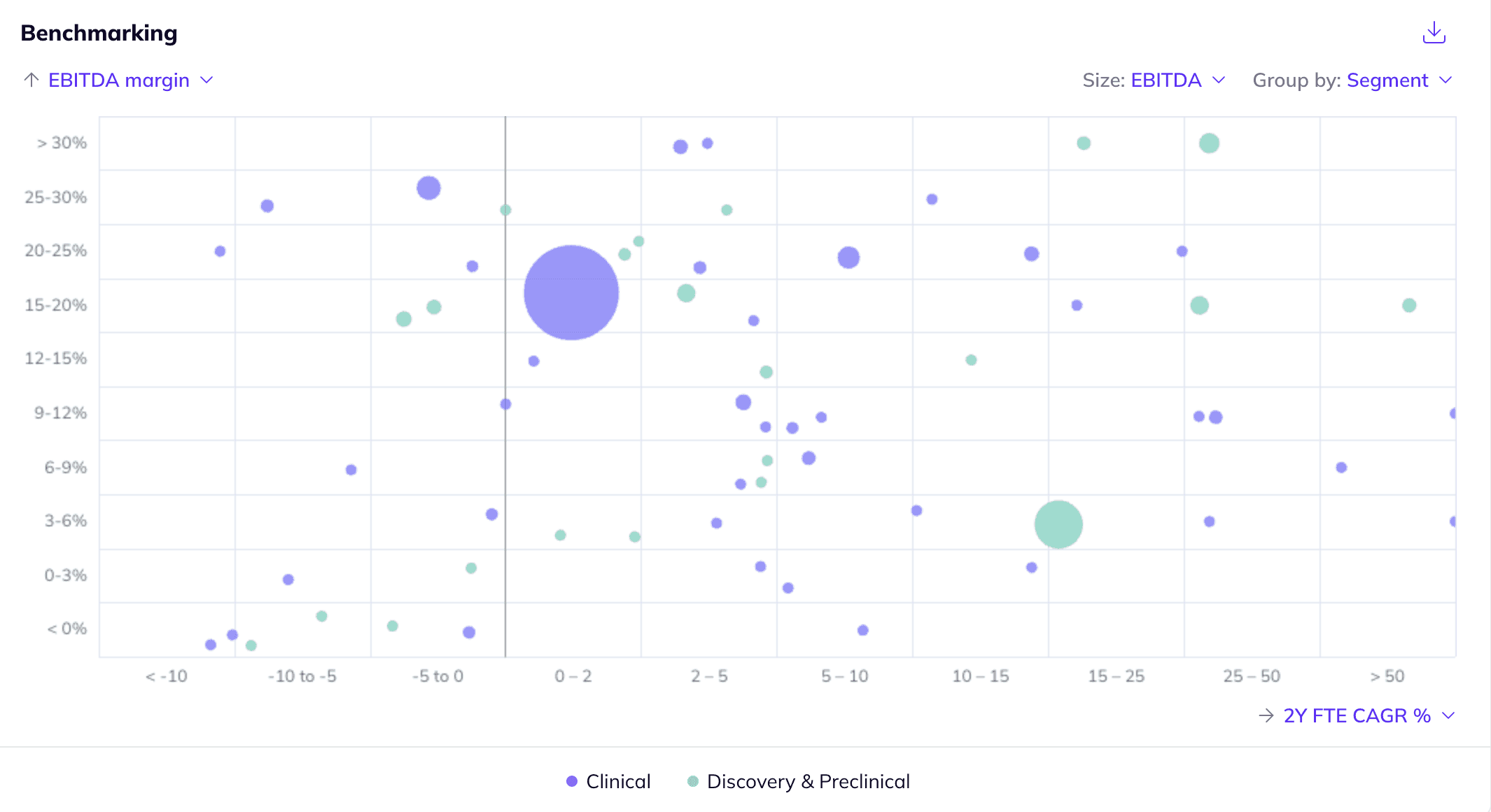 Consolidation has progressed across both the discovery & preclinical and clinical CRO segments in Europe, although the dynamics differ across the segments. In Europe’s discovery and preclinical CRO segment, deals are more often capability-led bolt-ons that add specialist scientific, regulatory or modality expertise. In contrast, consolidation in the clinical segment is centred around the development of scaled, technology-enabled end-to-end platforms. As pharmaceutical companies streamline vendor lists and digital transformation raises the need for integrated delivery, mid-tier CROs get increasingly squeezed out. In addition, two structural shifts are reshaping the market. First, AI is increasingly used to accelerate drug discovery and preclinical research while reducing costs. At the same time, clinical outsourcing is shifting from traditional full-service contracts (FSO) toward more modular functional service provision (FSP) models tailored to specific needs, alongside growing adoption of hybrid decentralised trial execution driven by demand for greater patient convenience and more efficient monitoring.